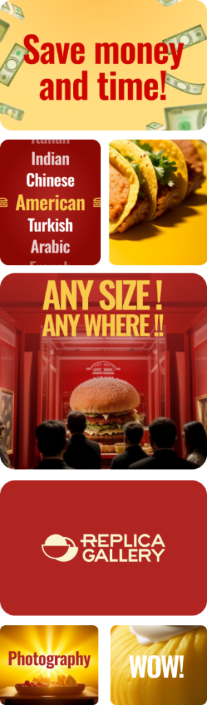 Transform your display windows with our vibrant food replicas! Embrace the motto “Reduce, Reuse, Recycle” while presenting a life-like and visually appealing menu without food wastage.